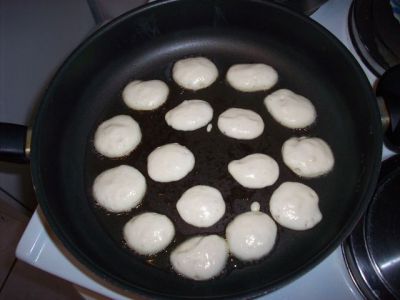 Тесто выкладываем чайной ложечкой, чтобы оладьи получились небольшие.