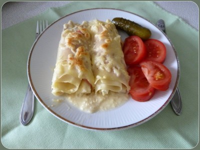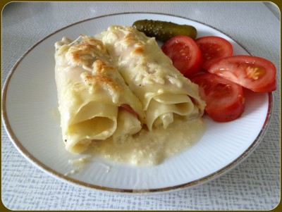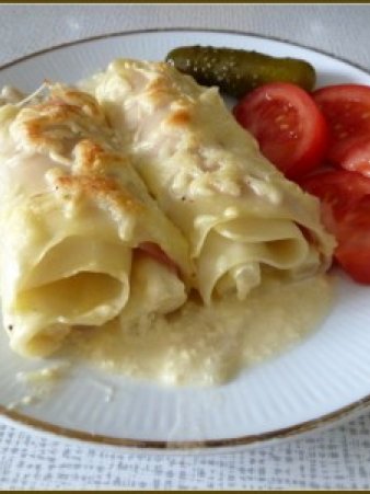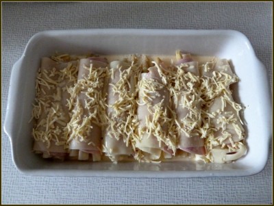 Перекладываем в форму для запекания. Так же сворачиваем остальные конвертики. Как видно на фото, некоторые листы лазаньи у меня порвались, но я сложила эти "лоскутки" и всё же свернула конвертики