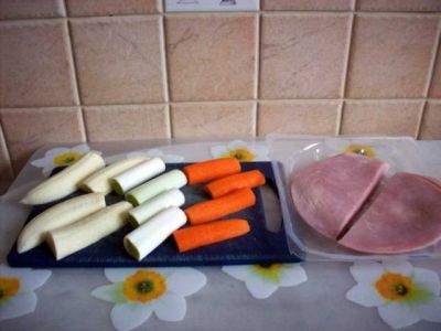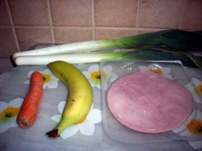 Я готовила это блюдо в первый раз. Рулетики с морковкой и бананом нам очень понравились, а вот лук-порей я в следующий раз заворачивать не буду. Использую только для подсыпки в форму.