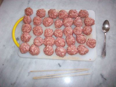 Мокрыми руками скатываем из фарша небольшие шарики.