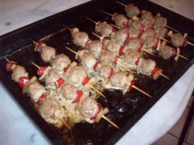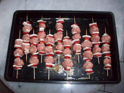 Лук, перец, сало, шарик, опять лук, перец, сало и т. д.