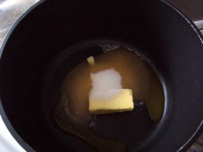 Сахар, сок и маргарин складываем в толстостенную кастрюлю или сковородку, растапливаем и кипятим на небольшом огне 7 минут.