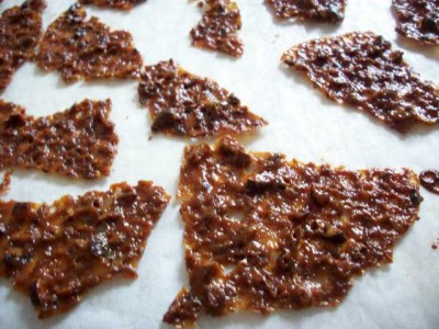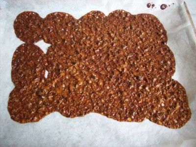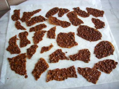 Ну раз не получилось "как лучше", пришлось сделать "как обычно" и разломать карамель после того, как она остыла, на произвольные кусочки.