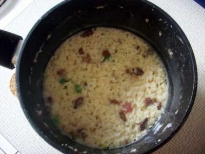 Выключаем плиту, рис оставляем на плите на некоторое время, пока он не впитает в себя всю жидкость.