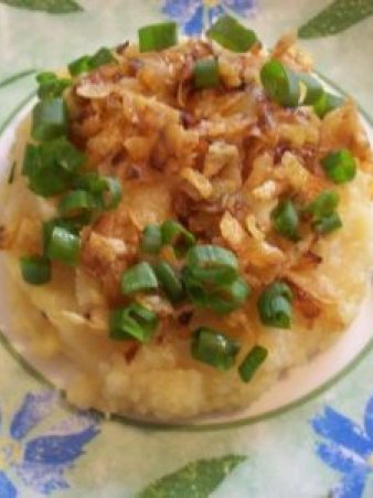 Вот и славно! Дадим им возможность спеть дуэт. Лишнюю жидкость сливаем, а ЯБЛОКИ с КАРТОШКОЙ разминаем в пюре.