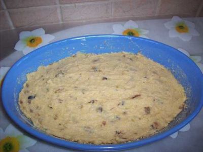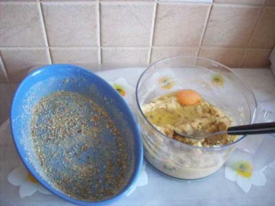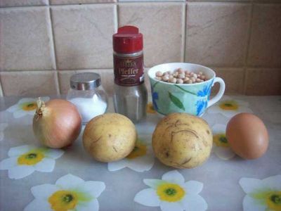 Теперь смешиваем горох, картошку, жареный лук добавляем яйцо, соль, перец.