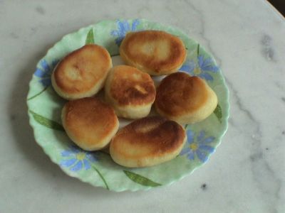 Вырезаем чем-нибудь круглые лепешки и обжариваем их на сковородке на растительном масле с обеих сторон.