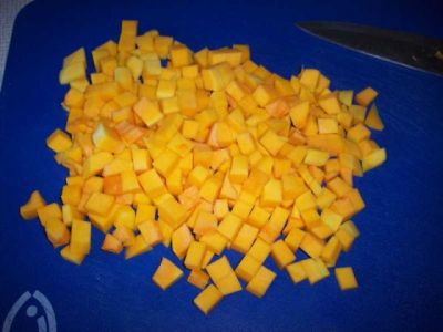 В этой тыкве оказалось очень мало семян и много мякоти. Я использовала для ризотто одну четвертушку - 250 грамм.