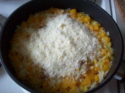 Осталось добавить пармезан и хорошо перемешать вилкой наше ризотто.