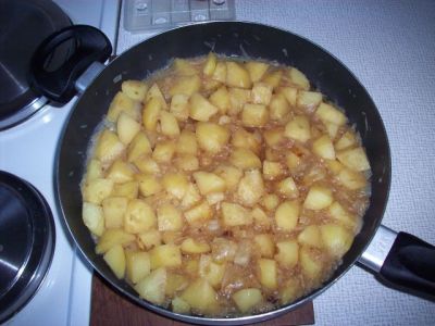 Соединяем картошку и лук, солим, перчим, заливаем кипятком (картошка не должна быть полностью покрыта водой).