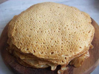 Когда дефицит был ДЕФИЦИТОМ, пойти в магазин и просто КУПИТЬ что-то съестное было невозможно. Нужно было ДОСТАТЬ или НАСКОЧИТЬ. Но при этом ходил анекдот о том, что "ничего невозможно достать, но у всех всё есть". В каком-то смысле так оно и было, потому что время от времени продукты "выбрасывали" на прилавок и те, кому посчастливилось попасть в этот момент в магазин, затоваривались по полной программе. Покупали столько, сколько могли унести. Квартиры часто походили на склады. Но была и обратная сторона этой медали - запасы имеют свойство портиться... Так случилось и у нас дома. В муке, купленой по случаю и впрок, завелись маленькие чёрные жучки. Мы просеяли муку несколько раз через самое густое сито и вроде-бы жучков в ней не осталось, но мы решили для дополнительного "обезвреживания" прокалить муку в духовке. И немного перестарались. Мука стала кремового цвета! Что делать? Выбросить жалко! Решили блинчики испечь. И получились они очень необычные и вкусные.