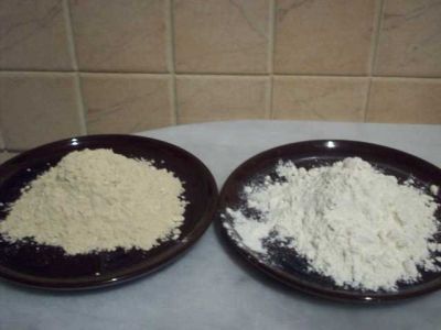 Для сравнения я сфотографировала рядом обычную муку и обжаренную. Видите разницу?