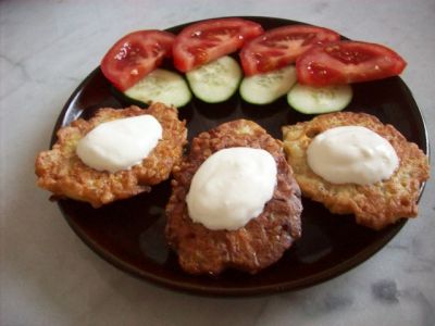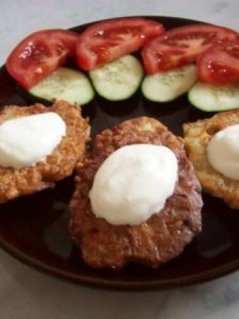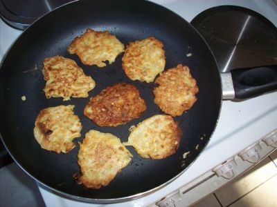 Выкладываем туда столовой ложкой тесто и обжариваем оладьи с двух сторон.