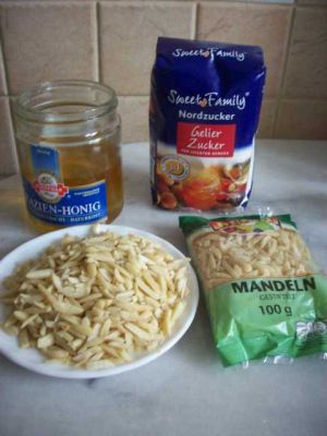 200 гр миндаля, нарезанного длинными узкими кусочками