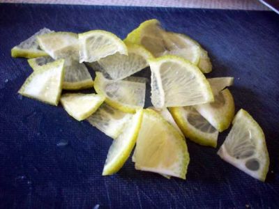 Туда же добавляем тонко нарезанную половинку лимона.
