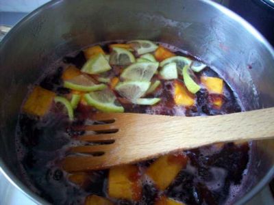 Добавляем к ним рюмку рома. Где-то я читала, что к любому варенью неплохо добавлять в самом начале варки рюмочку рома - тогда оно получается вкуснее и лучше сохраняется.