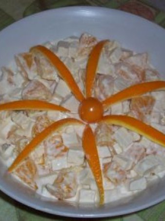 Ещё один совет (уже от меня, а не от автора рецепта). Если у вас апельсин, кожура которого пригодна к пище, нарежьте немного кожуры и тоже добавьте в салат - он станет ещё вкуснее.