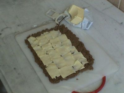 Покрываем всю поверхность паштета тонкими пластинками масла.