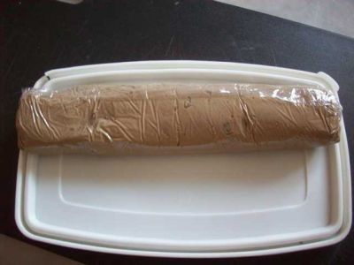 Завернула его в ту же плёнку и отправила в холодильник на всю ночь.