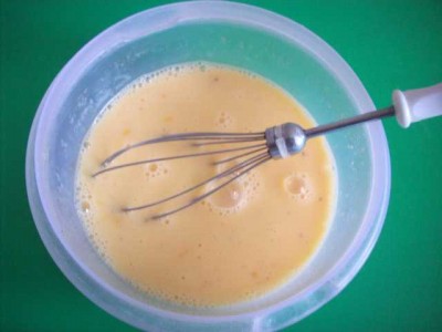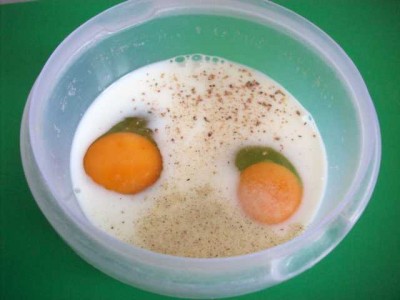 Теперь наполним чашечки приготовленной яично-молочной смесью.