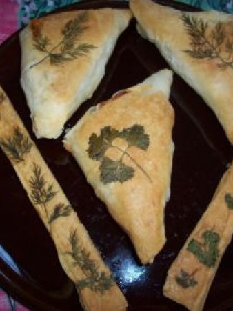 Если у вас есть тесто фило, немного сыра и зелени, можно сделать такие треугольнички.