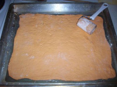 Теперь его нужно довольно тонко (3-4 мм) раскатать.