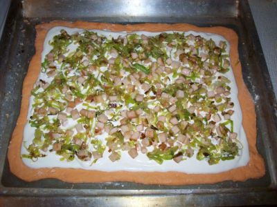 Я сделала одну большую пиццу на весь листик, но, конечно, можно было сделать две или даже несколько круглых.