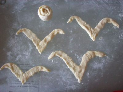 Из маленького кусочка теста сделаем какие-нибудь украшения - листочки, косички, цветочки - кому что нравится.
