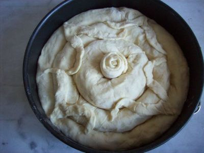 Теперь оставим пирог в покое на пол-часика. Пусть тесто еще немного подойдет.