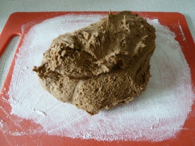 Тесто по-прежнему очень липкое, поэтому его нужно чуть-чуть обвалять в муке, прежде, чем работать с ним дальше