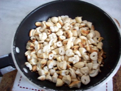 Орехи крупно нарезаем и слегка обжариваем на сухой сковородке