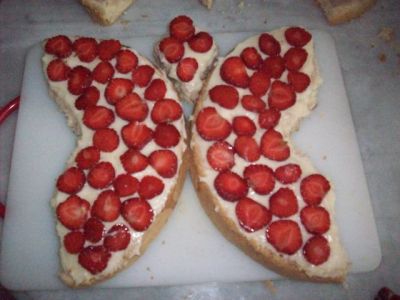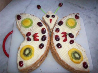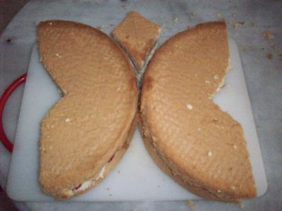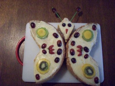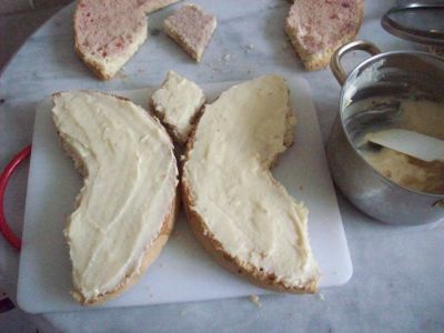 Теперь складываем из нижних частей бабочку и смазываем её кремом.