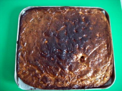 Горячий пирог при помощи кисточки смазываем глазурью (сахарная пудра, смешанная с водой - должна получиться не очень жидкая масса). Теперь он у нас заблестел.