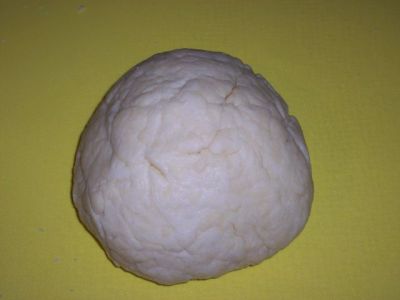 Добавляем муку с разрыхлителем. Если у вас сухой творог, то муки скорее всего понадобится меньше. Или добавьте ещё пару ложек молока. Тесто должно получиться мягкое, но держать форму шара.