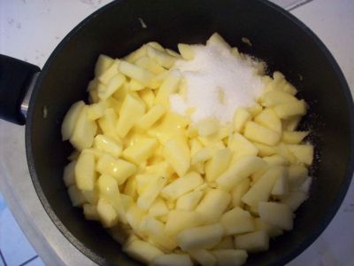 Почистим и нарежем небольшими кубиками яблоки.