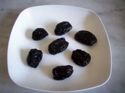 Вынимаем из чернослива косточку. Если он у вас твёрдый, то его нужно предварительно замочить на несколько часов в воде.