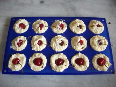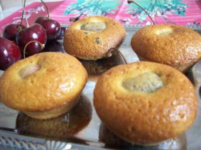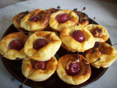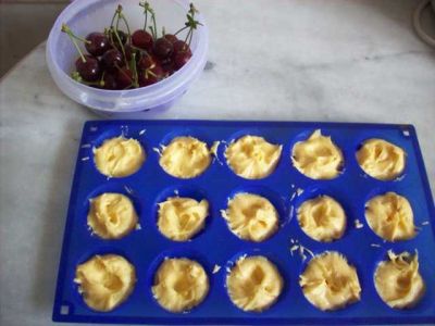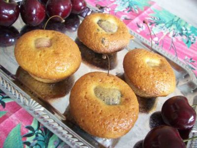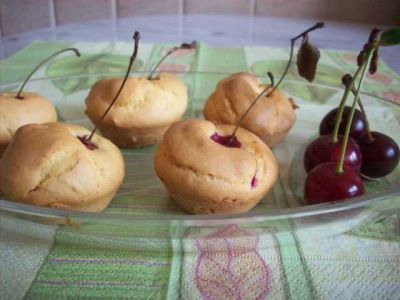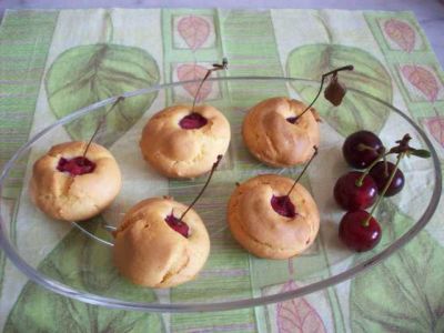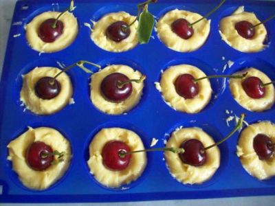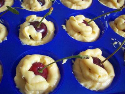Второй вариант кексиков я сделала из сметанного теста и не с вишнями, а с черешнями.