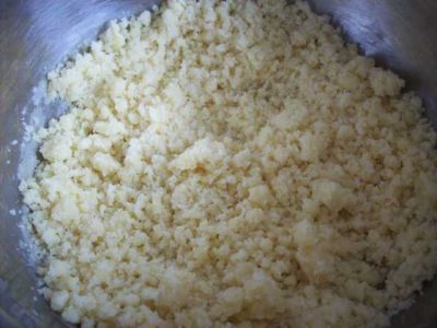 Растопим масло, добавим к нему муку, сахар, лимонный сахар (или цедру), корицу.
