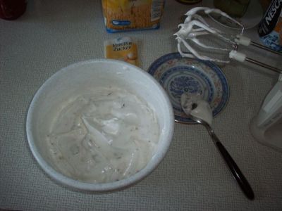 Добавить сахар, ванильный сахар и еще недолго взбить.